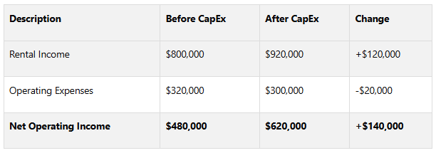 Here’s an example of how a well-executed CapEx project can improve NOI: